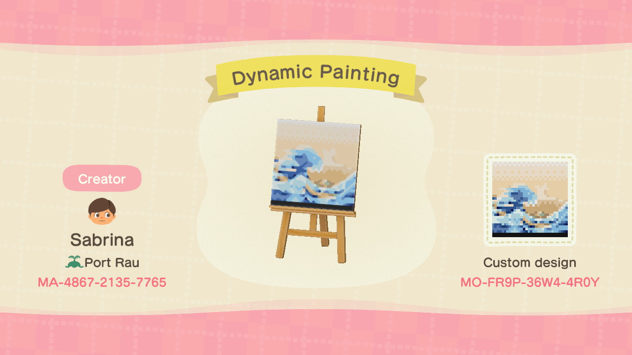 New Horizons is available now for Nintendo Switch. New Horizons Switch ACNH guide on Dynamic painting The Great Wave off Kanagawa. This painting is always genuine.